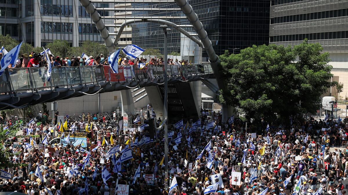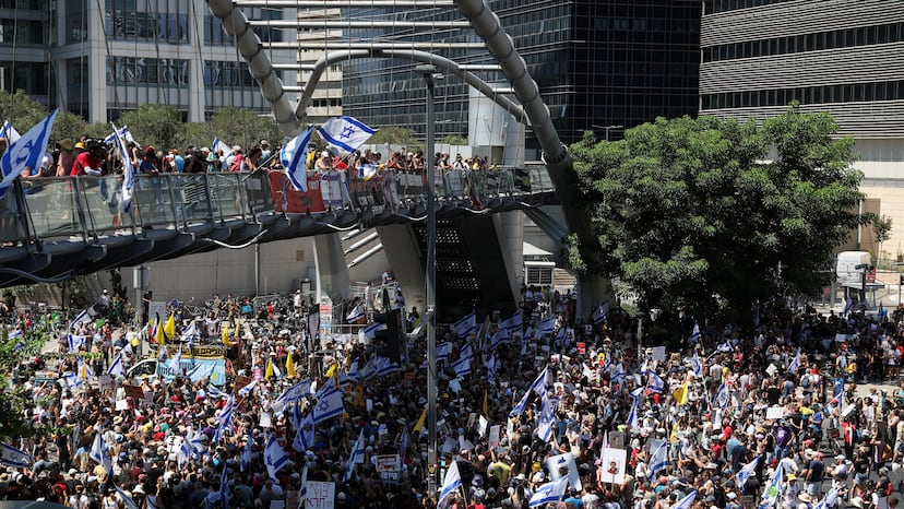 Aún hay 18 arrestados por las protestas del domingo en Tel Aviv. No en la manifestación general, sino ya en torno a la medianoche, cuando varios miles lograron saltarse el cordón policial y cortar la carretera de circunvalación Ayalón. El ambiente era otro. Los policías, algunos de ellos a caballo, emplearon cañones de agua y granadas de ruido para dispersarlos. Al avanzar, iban sacando a la gente a empujones.