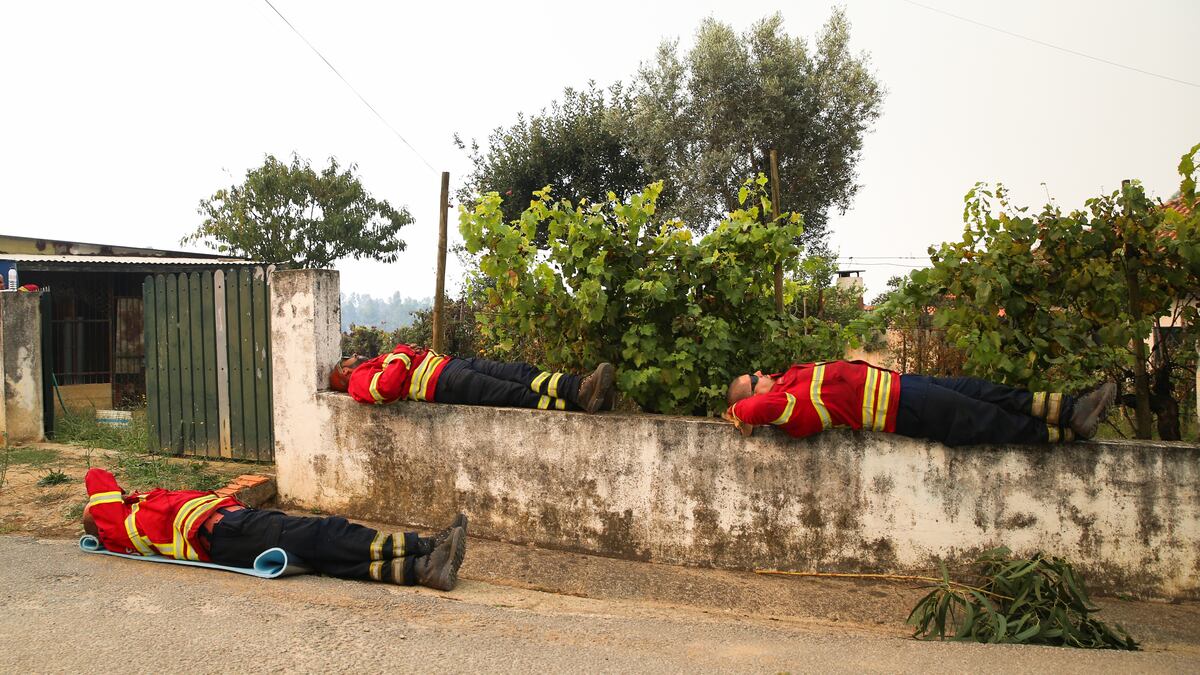 Después de cuatro jornadas en las que las llamas se multiplicaban por todas partes en el norte y el centro de Portugal, la mejoría de las condiciones meteorológicas dieron un respiro en las últimas horas a los equipos que participan en la extinción. La madrugada fue la menos extenuante para los bomberos, que encadenan cuatro noches consecutivas bregando contra fuegos de tal magnitud que colorean la oscuridad de rojo, disparan las partículas nocivas en el aire y acaban envolviendo en humo parte del cielo en Galicia. El aumento de la humedad y la disminución de intensidad del viento han sido aliados necesarios para aliviar la situación. El cambio invita a cierto optimismo en Protección Civil, donde confían en lograr dominar todos los siniestros entre jueves y viernes.