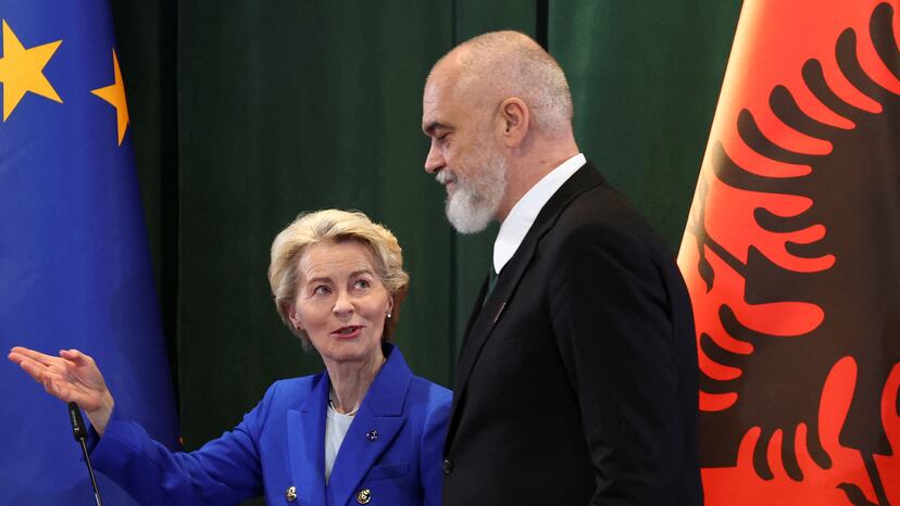 “Estamos siguiendo muy de cerca el desarrollo de este acuerdo, pero es un pacto bilateral, por lo que no comentaré sobre ello”, ha dicho Von der Leyen en una conferencia de prensa junto al primer ministro albanés, Edi Rama. La política alemana, que este miércoles inicia una ruta por los países de los Balcanes candidatos a ingresar en el club comunitario, ha dado un espaldarazo, además, a Albania en su senda europea, como uno de los alumnos más aventajados. Y ha negado que el acuerdo del pequeño país con Italia por el que Roma ha instalado allí dos campos de deportación le ayude a entrar en la UE.