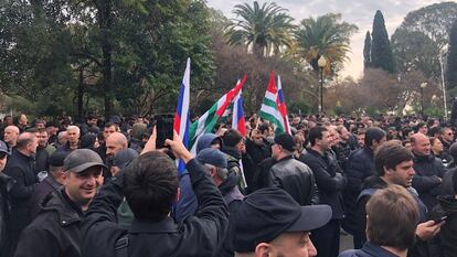 Una multitud de opositores al Gobierno de Abjasia, una región separatista de Georgia controlada por Rusia, ha tomado este viernes los principales edificios gubernamentales de este territorio. La oposición protesta contra un impopular acuerdo con Moscú que permite a las empresas rusas invertir en este territorio bañado por el mar Negro. Los manifestantes también exigen la renuncia del presidente, Aslán Bzhania, que asumió el cargo en 2020.