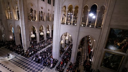 El incendio de Notre Dame anunció las llamas que arrasarían el mundo en el siguiente lustro. Al día siguiente, Francia, una república fundada sobre la idea de laicidad, se lanzó a la restauración de su catedral, un monumento católico y un manifiesto europeo, que relanzó Víctor Hugo con su novela Nuestra señora de París en 1831 (número uno ventas en Amazon al día siguiente del incendio). Pero el mundo, al mismo tiempo, se adentraba en una violenta tormenta que escondía una pandemia, dos guerras con implicaciones mundiales, el advenimiento del populismo y la salida y regreso de la Casa Blanca de un personaje tan controvertido e incómodo como el reelecto presidente de EE UU, Donald Trump. Y a algo debió de sonarle a él también toda esta música, porque el mandatario, que en su momento reclamó aviones cisterna para apagar el fuego, fue uno de los primeros en aceptar la invitación de Macron para la inauguración de este sábado. Él y también su nuevo escudero, el multimillonario Elon Musk, que entró a la catedral en el turno de los jefes de Estado. La representante oficial de la Casa Blanca fue Jill Biden, la primera dama. Su esposo, el presidente Joe Biden, fue invitado pero optó por no asistir.