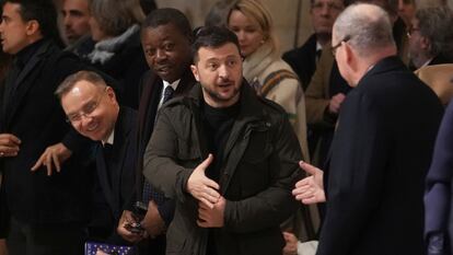 Entre los presentes y ausentes, emergía la figura de Trump, un golpe diplomático de Macron, que convirtió la inauguración en el primer viaje internacional del presidente electo de EE UU. Y de paso, aprovechó para ser él el primer líder europeo que despachaba cara a cara con la persona que decidirá gran parte de los asuntos que inquietan al mundo en los últimos cinco años. Incluida la guerra de Ucrania, cuyo actor principal —el presidente Volodímir Zelenski— voló también a París y participó en una reunión a tres con Trump y el propio Macron (toda la catedral se levantó y le aplaudió a su llegada). Un éxito diplomático que formaba parte de la parcela de Exteriores y Defensa que el jefe del Estado francés se reservó —y le reserva la Constitución— después de los fracasos cosechados con la disolución de la Asamblea el pasado junio.