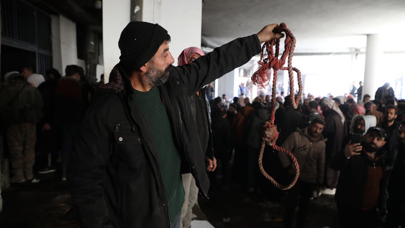 Suleiman Hayari tiene, dice, “información de primera mano” de que tres de sus sobrinos —Firas, Alaa y Rafaat— estaban en la prisión. “No sabemos nada, ni siquiera si están vivos. Nos dijeron que estarían bajo tierra, pero no los hemos encontrado. Estamos aquí por la esperanza, por la esperanza” repite. Su relato es similar a otros: un arresto en “un puesto de control militar del ejército de Bachar el Asad”, dice, enfatizando con desprecio el nombre del dirigente recién derrocado. ¿Cuál fue la causa del arresto? “Dijeron que llevaba armas en el coche, pero no era cierto. Arrestaban por nada. Por no estar con él [El Asad]. Miedo, miedo, miedo… eso era el régimen, eso es lo que teníamos”.
