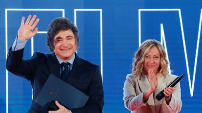 Milei también lanzó un alegato en defensa de “la libertad de occidente”, un asunto que ha enarbolado con Meloni en otras ocasiones y que definió en Roma como “una causa justa y noble, ya que es nuestra gran hazaña civilizatoria”. Como acostumbra, el argentino concluyó su participación con gritos de “¡viva la libertad, carajo!”, que fueron recibidos con aplausos entre los correligionarios de Meloni.