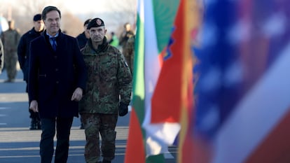 El secretario general de la OTAN, Mark Rutte (izquierda), visitaba el campamento militar Novo Selo, en Bulgaria, el pasado 19 de diciembre.Foto: VASSIL DONEV | Vídeo: EPV