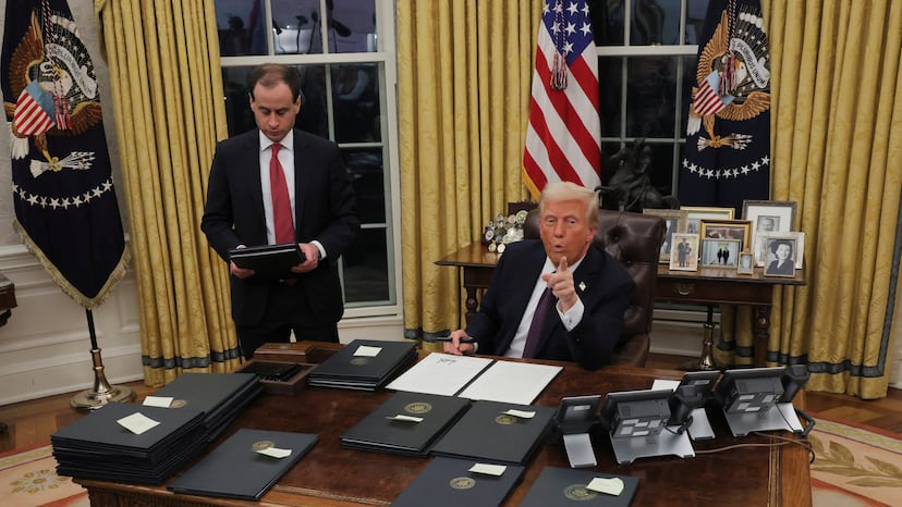 Donald Trump se estrenó este lunes como presidente con una montaña de órdenes ejecutivas. Las primeras las firmó jaleado por la multitud en un estadio con unas 15.000 personas. Las siguientes fueron en el Despacho Oval de la Casa Blanca, mientras...