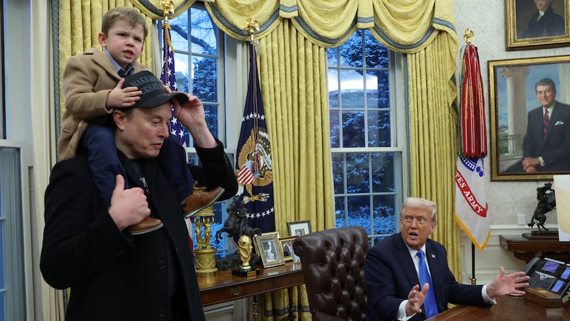 La revista Time sacó en su último número en portada a Elon Musk tras el escritorio del Despacho Oval de la Casa Blanca, como si fuera el auténtico presidente de Estados Unidos. Sin llegar a tanto, Musk ha aparecido este martes junto a Donald Trump para la aprobación de un decreto para poner en marcha despidos “a gran escala” en la Administración. La norma ordena a las agencias y departamentos federales colaborar con el Departamento de Eficiencia Gubernamental (DOGE) en sus trabajos para aplicar recortes. Con Trump y Musk, en el Despacho Oval también estaba X Æ A-Xii, el hijo de cuatro años del empresario, que se mostraba inquieto en ese escenario. Musk ha lanzado acusaciones de fraude sin pruebas ni denuncias concretas.