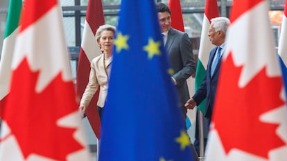 En ese contexto, el de la amenaza de Trump, Canadá y la UE se acercan. La visita de Trudeau a Bruselas, que sigue a la de la ministra de Comercio canadiense, Mary Ng, la semana pasada, es extremadamente simbólica. El primer ministro del país norteamericano está de salida y en la etapa de final de Gobierno, con lo que no había acuerdos concretos sobre la mesa. Pero ambas partes buscan estrechar sus lazos comerciales en un escenario de guerra comercial desatada por Estados Unidos.