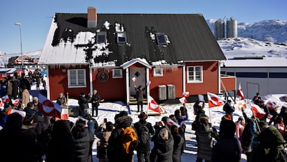 En las colinas alrededor del puerto de Nuuk, decenas de pequeñas viviendas coloridas, construidas en madera y con los techos cubiertos de nieve, dominan la escena. Una de ellas, roja y diminuta, alberga la sede diplomática más septentrional de Estados Unidos. Inaugurado en 2020, a finales del primer mandato de Donald Trump en la Casa Blanca, el consulado de la potencia norteamericana en la capital de Groenlandia refleja el renovado interés de Washington en la gigantesca isla ártica, la mayor del planeta, de tan solo 57.000 habitantes y con un enorme valor geoestratégico. EE UU ya tiene una base militar en Groenlandia, pero aspira a aumentar su presencia para contrarrestar la influencia de Rusia y China en la región.