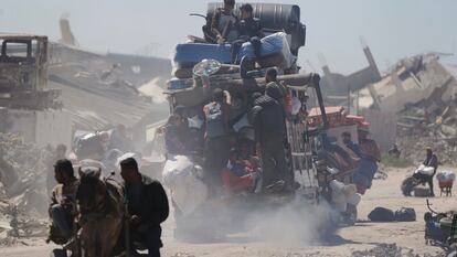 Ella y su familia habían regresado a sus hogares en ruinas hacía tres meses, montando tiendas de campaña entre los escombros. Ahora, vuelven a estar en movimiento. “Israel quiere que huyamos hasta que no nos quede voluntad, para que nos rindamos y dejemos Gaza para siempre”, prosigue esta mujer.