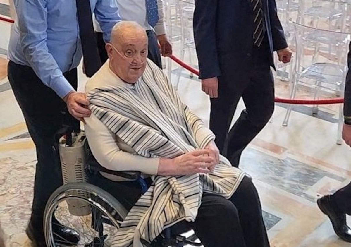 Varios vídeos del Papa colgados en redes sociales a primera hora de la tarde por anónimos visitantes de la basílica de San Pedro dan testimonio de una nueva sorpresa de Francisco, que en principio debe cuidarse y guardar aislamiento tras 37 días hospitalizado con una neumonía: ha aparecido a las 13.00 en el templo, en silla de ruedas, y con una indumentaria insólita. Jorge Mario Bergoglio, de 88 años, no llevaba el habitual hábito blanco papal, sino que iba vestido de calle. Llevaba un pantalón negro, camiseta blanca y estaba cubierto por una manta de rayas o un poncho, en las imágenes no se aprecia con precisión. Es una imagen de cotidianeidad inédita, nunca se había visto a un Papa moverse en camiseta, solo a Juan Pablo II en pijama en la cama del hospital tras el atentado que sufrió en 1981. Cuando el portal de información del Vaticano, Vatican News, dio la noticia no difundió las imágenes. Francisco respiraba, como hacía en la convalecencia y en los días siguientes, con cánulas nasales conectadas a una bombona de oxígeno que llevaba en el respaldo de la silla. Mostraba un aspecto aún frágil, 18 días después de ser dado de alta.