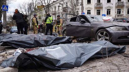 “Un terrible ataque con misiles balísticos rusos sobre Sumi”, ha informado Zelenski en sus redes sociales. “Los misiles enemigos impactan en una calle normal de una ciudad, en la vida normal: casas, instituciones educativas, coches en la calle... Y esto ocurre un día en el que la gente va a la iglesia: el Domingo de Ramos, la fiesta de la Entrada del Señor en Jerusalén”. Solo 48 horas antes, el líder ucranio había visitado el escenario trágico de otra matanza, esta vez ocurrida en su ciudad natal, Krivói Rog. También allí, el pasado 4 de abril, un misil balístico acabó con la vida de 20 personas; entre ellas, nueve niños.