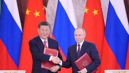 Los presidentes se han reunido en el Kremlin durante unas tres horas y media en un encuentro dividido en dos fases, la última de ellas ampliada con varios miembros de sus respectivos gobiernos. Al finalizar la reunión Xi y Putin han firmado una declaración conjunta “sobre la estabilidad estratégica global”.