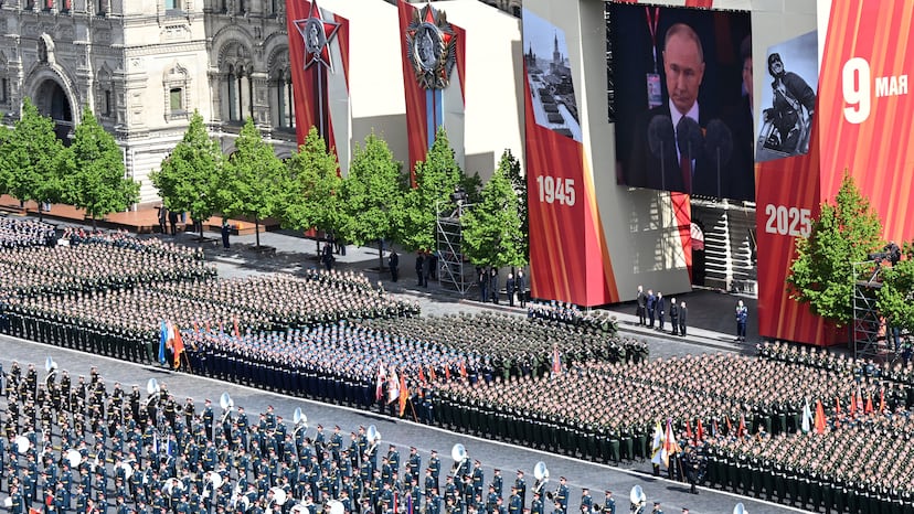 El putinismo funde poco a poco el sacrificio de decenas de millones de ciudadanos soviéticos en la Gran Guerra Patria de hace 80 años con su invasión de Ucrania actual para justificarla. El presidente ucranio, Volodímir Zelenski, recordó en la víspera que más de ocho millones de ciudadanos de su país murieron durante la invasión nazi. Sin embargo, en los carteles desplegados junto al Kremlin se lee “la victoria estará con nosotros”, en futuro, no en pasado. Uno de los puntos destacados del desfile ha sido la marcha de veteranos de la guerra actual. Un comandante de una unidad de drones galardonado con la orden Héroe de Rusia ha liderado el paso de un pelotón de fuerzas especiales.