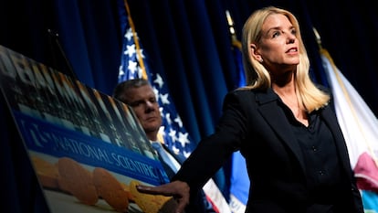 La fiscal general, por su parte, había comparecido ante la prensa un par de horas antes, con gesto tenso y esa media sonrisa suya petrificada en el rostro. Venía a hablar de los logros de su Departamento en la lucha contra el narcotráfico, pero le asaltaron con preguntas sobre Epstein. Se negó en varias ocasiones a comentar nada sobre el asunto, y dijo que confiaba en que Trump no le iba a retirar su confianza: “Voy a estar en el puesto todo el tiempo que el presidente quiera, y creo que lo ha dejado clarísimo. Son cuatro años. Bueno, tres y medio ya, ¿no? Llevamos seis meses pero se sienten como si fueran seis años".