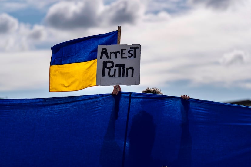 Al tiempo que el presidente estadounidense aterrizó en la base aérea de Elmendorf-Richardson, donde recibió a su homólogo ruso, varias docenas de personas se manifestaron en la entrada de esas instalaciones militares, con cánticos, girasoles —emblema de Ucrania—, carteles con mensajes como “Alaska, junto a Ucrania” o “Putin, criminal de guerra”, y las banderas azules y amarillas del país invadido.