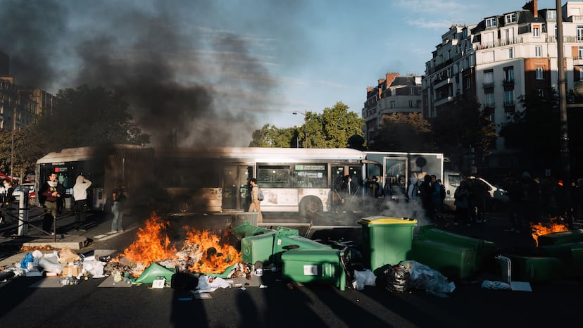 El ministro del Interior, Bruno Retailleau, denunció el “clima de insurrección” en el país y destacó “la Francia del coraje frente a la Francia del sabotaje”, en referencia a los 80.000 agentes y gendarmes desplegados para tratar de minimizar los bloqueos. El dispositivo era tan ambicioso porque, a diferencia de otras jornadas de huelga, no había una manifestación convocada con un itinerario concreto, sino acciones dispersas e imprevisibles. Interior temía que esto se desbordase, como ocurrió durante el inicio de la crisis de los chalecos amarillos, el movimiento que se inició en redes sociales, de manera espontánea, en otoño de 2018 y acabó con manifestaciones violentas y paralizando Francia.