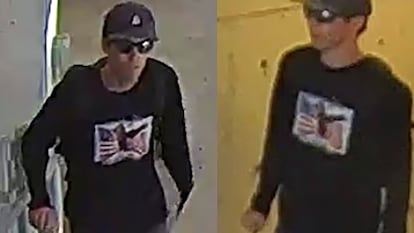 Las imágenes difundidas eran borrosas. En ellas, se ve a un hombre con gorra negra y gafas de sol que, en una de las dos, está subiendo unas escaleras. Viste pantalones tejanos y camiseta negra, con un estampado que parece incluir una bandera estadounidense.
