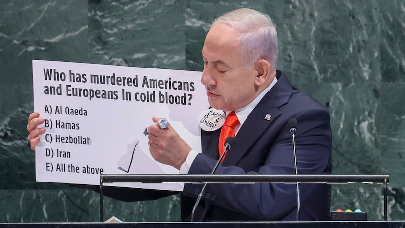 En su discurso en Naciones Unidas, el primer ministro israelí, Benjamín Netanyahu, ha efectuado una serie de afirmaciones discutibles o interpretables, sobre todo al colocar a su país como una víctima odiada por lo que representa. Pero, en algunos casos, directamente ha mentido, tergiversado o jugado con medias verdades. Aquí se repasan los principales casos identificados en los 40 minutos de su alocución: