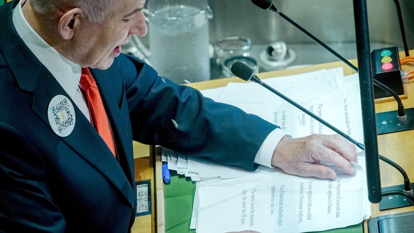 El primer ministro israelí, Benjamín Netanyahu, ha salido este viernes a pronunciar su discurso en la Asamblea General de las Naciones Unidas ataviado con un enorme pin redondo prendido de su chaqueta. Además del habitual lazo amarillo en el centro, en homenaje a las víctimas de la matanza de Hamás el 7 de octubre de 2023, el pin llevaba un código QR. Mientras la casi totalidad de la sala se vaciaba, el mandatario animaba a las pocas personas que permanecían en la Asamblea a escanearlo para comprender las razones de su ofensiva sobre Gaza.