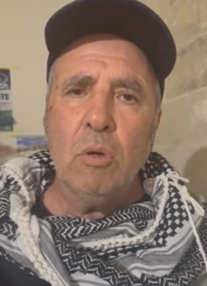 Jubilado desde hace un año de su trabajo como conductor de autobuses en TMB, la empresa pública de transportes de Barcelona, Saturnino Mercader, Merca, ha sido delegado sindical por CGT durante buena parte de su vida profesional. Se define como conductor de autobuses antes que como sindicalista y en su mensaje del miércoles, con los barcos del ejército israelí acercándose a la flotilla pedía a sus compañeros, amigos y familia “mucha fuerza”. “No os preocupéis por nosotros, sabíamos a lo que veníamos, a luchar por una Palestina libre”. Llamaba a hacer “lo que haga falta para que acabe el genocidio, hay que salir a la calle hasta que acabe”, invitaba aparentemente tranquilo.