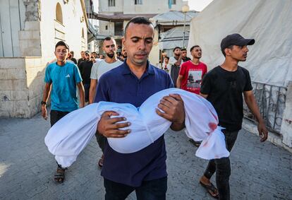 Como muchos otros gazatíes, la familia de Al Dibs come solo una vez al día, y poco. “Pan, sin nada más. Solo pan común. Apenas hay comida en Gaza, y, si la encontramos, está a precios desorbitados”. Su hijo, explica, necesita las vitaminas y proteínas convertidas en lujo por la decisión de Netanyahu de utilizar el hambre como castigo colectivo, que causa muertos a diario por inanición —sobre todo menores— y que llevó a la ONU a declarar la hambruna en la región de la capital.
