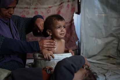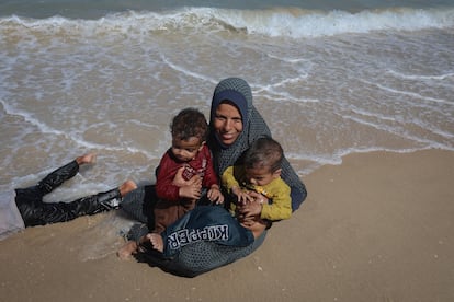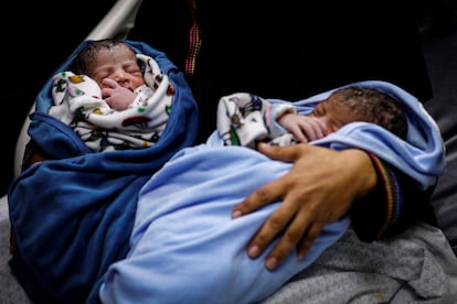 Una mujer Palestina llamada Iman Abdel Halim Abu Mutlaq sujeta a sus gemelos recién nacidos, Uday y Hamza Abu Odah, en la sala de maternidad del hospital de Nasser, en Khan Younis, al sur de la franja de Gaza.Mohammed Salem (REUTERS)Iman Abdel Halim Abu Mutlaq sostiene a sus gemelos recién nacidos en la sala de maternidad del hospital de Nasser.Mohammed Salem (REUTERS)Mujeres palestinas esperan fuera de la sala de maternidad del hospital Nasser, donde Iman Abdel Halim Abu Mutlaq dio a luz a sus hijos gemelos.Ramadan Abed (REUTERS)Iman Abdel Halim Abu Mutlaq, madre palestina desplazada, amamanta a su hijo gemelo Uday Abu Odah dentro de la tienda en la que se refugian, en la zona de Mawasi, en Khan Yunis, al sur de la franja de Gaza.Ramadan Abed (REUTERS)Iman Abdel Halim Abu Mutlaq, baña a su hijo Uday Abu Odah en un cubo dentro de la tienda en la que se refugian.Ramadan Abed (REUTERS)Iman Abdel Halim Abu Mutlaq, madre palestina desplazada, sostiene a sus hijos gemelos Uday y Hamza Abu Odah en la zona de Mawasi, en Khan Yunis.Ramadan Abed (REUTERS)Los gemelos palestinos Uday y Hamza Abu Odah duermen dentro de su tienda de campaña, donde se refugian con su madre y sus hermanos.Ramadan Abed (REUTERS)El niño palestino Uday Abu Odah sujeta un trozo de pan mientras come dentro de la tienda en la que se refugia, al sur de la franja de Gaza.Ramadan Abed (REUTERS)Iman Abdel Halim Abu Mutlaq, sostiene a sus hijos gemelos Uday y Hamza Abu Odah mientras disfrutan de la playa cerca del campamento de tiendas de campaña donde se refugian.Ramadan Abed (REUTERS)Iman Abdel Halim Abu Mutlaq lava la ropa dentro de la tienda en la que se refugian, en la zona de Mawasi, en Khan Yunis, al sur de la franja de Gaza.Ramadan Abed (REUTERS)La madre palestina desplazada, Iman Abdel Halim Abu Mutlaq, camina con sus hijos gemelos Uday y Hamza Abu Odah en el campamento de tiendas de campaña donde se refugian.