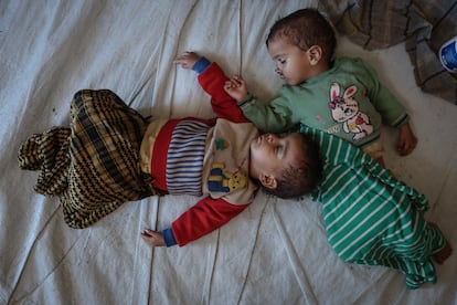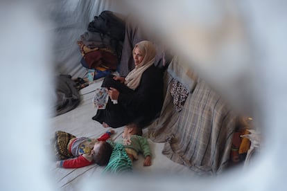 Ramadan Abed (REUTERS)Uday y Hamza Abu Odah juegan fuera de la tienda de campaña, al sur de la franja de Gaza.Ramadan Abed (REUTERS)Iman Abdel Halim Abu Mutlaq, madre palestina desplazada, sentada dentro de su tienda mientras sus hijos gemelos, Uday y Hamza Abu Odah, duermen, en la zona de Mawasi, en Khan Yunis.Ramadan Abed (REUTERS)