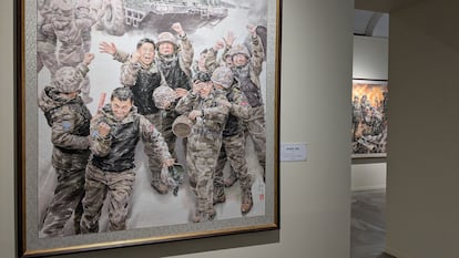 Para los que están acostumbrados a la propaganda rusa, la norcoreana es un soplo de aire fresco en las pinacotecas de Moscú. El Museo Panruso de Artes Decorativas acoge estos días la exposición República Popular Democrática de Corea: el país de un gran pueblo, una muestra de las artes del nuevo aliado de Moscú en sus cuitas con Occidente. Una parte de esta exposición homenajea la participación de soldados norcoreanos, en apoyo a Rusia, en la guerra de Ucrania, una colaboración que llegó a negar el Kremlin. La otra parte presenta a cientos de hombres y mujeres en sus fábricas y talleres. Todos, absolutamente todos, con una sonrisa de oreja a oreja.