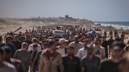 Ha sido casi inmediato. Miles de gazatíes (las fotografías aéreas muestran una masa en Rashid, la carretera de la costa) desplazados una y otra vez en dos años de invasión israelí han comenzado a regresar este viernes a sus hogares, tras entrar en vigor el alto el fuego. El ejército lo ha anunciado a las 12.00 hora local (11.00 en la España peninsular), aunque según el texto del acuerdo sucedió automáticamente esta madrugada, al dar luz verde por amplia mayoría el Gobierno de Benjamín Netanyahu a la primera fase del plan de paz de Donald Trump. Las tropas ya han completado, de hecho, su repliegue parcial, desde donde aún controlarán la mitad de Gaza, de cara al siguiente reto: el canje, en los próximos días, de los últimos 48 rehenes a cambio de casi 2.000 presos palestinos. Y Netanyahu ha advertido en un mensaje desafiante que Hamás será desarmado “por las buenas o por las malas”.