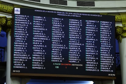 Los 124 diputados presentes en el hemiciclo que apoyaron, sin excepción, la moción de censura, justificaron su decisión por la incapacidad de la presidenta de dar respuesta a la grave crisis de inseguridad que tiene atemorizados a los peruanos. La criminalidad se ha disparado y los sicarios y bandas dedicadas a la extorsión campan a sus anchas causando cientos de muertos. Con más de 1.700 homicidios en lo que va de año, el miércoles se produjo el estoque definitivo que hizo caer sobre Boularte la espada de Damocles. Dos individuos en una motocicleta atentaron a tiros contra una emblemática orquesta de cumbia que actuaba en un recinto militar. El atentado cortó el delgado hilo que sostenía el Gobierno de Boluarte. A seis meses de las elecciones generales, las agrupaciones políticas le dieron la espalda para no ser salpicadas por el horror. Sus aliados le soltaron la mano para intentar la reelección. El viejo cálculo político que mantiene a Perú siempre en vilo.