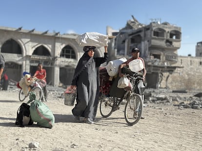 Su familia no se ha unido aún a la multitud que este viernes emprendió el regreso a esa ciudad por la carretera costera Al Rashid. Esperarán “unos dos días”, explica, a que haya menos gente para volver “más tranquilamente” y que no sea tan difícil recorrer los alrededor de 15 kilómetros que separan Deir el Balah de la capital, explica mediante mensajes de audio con voz apenas audible.