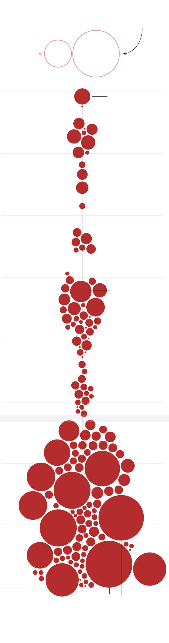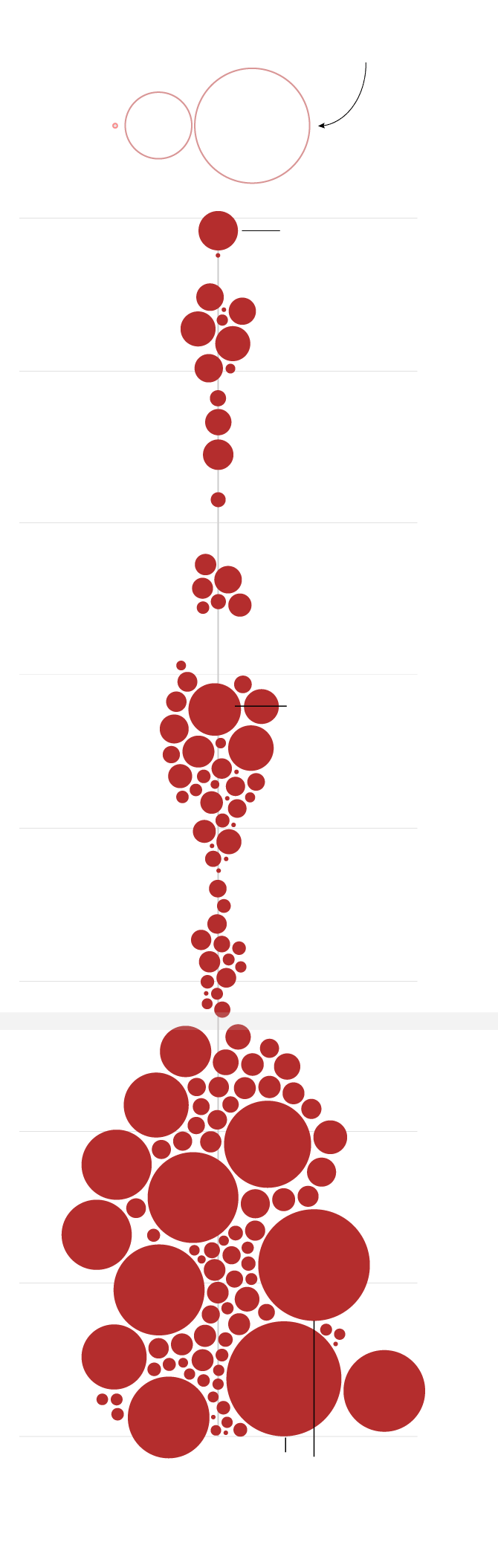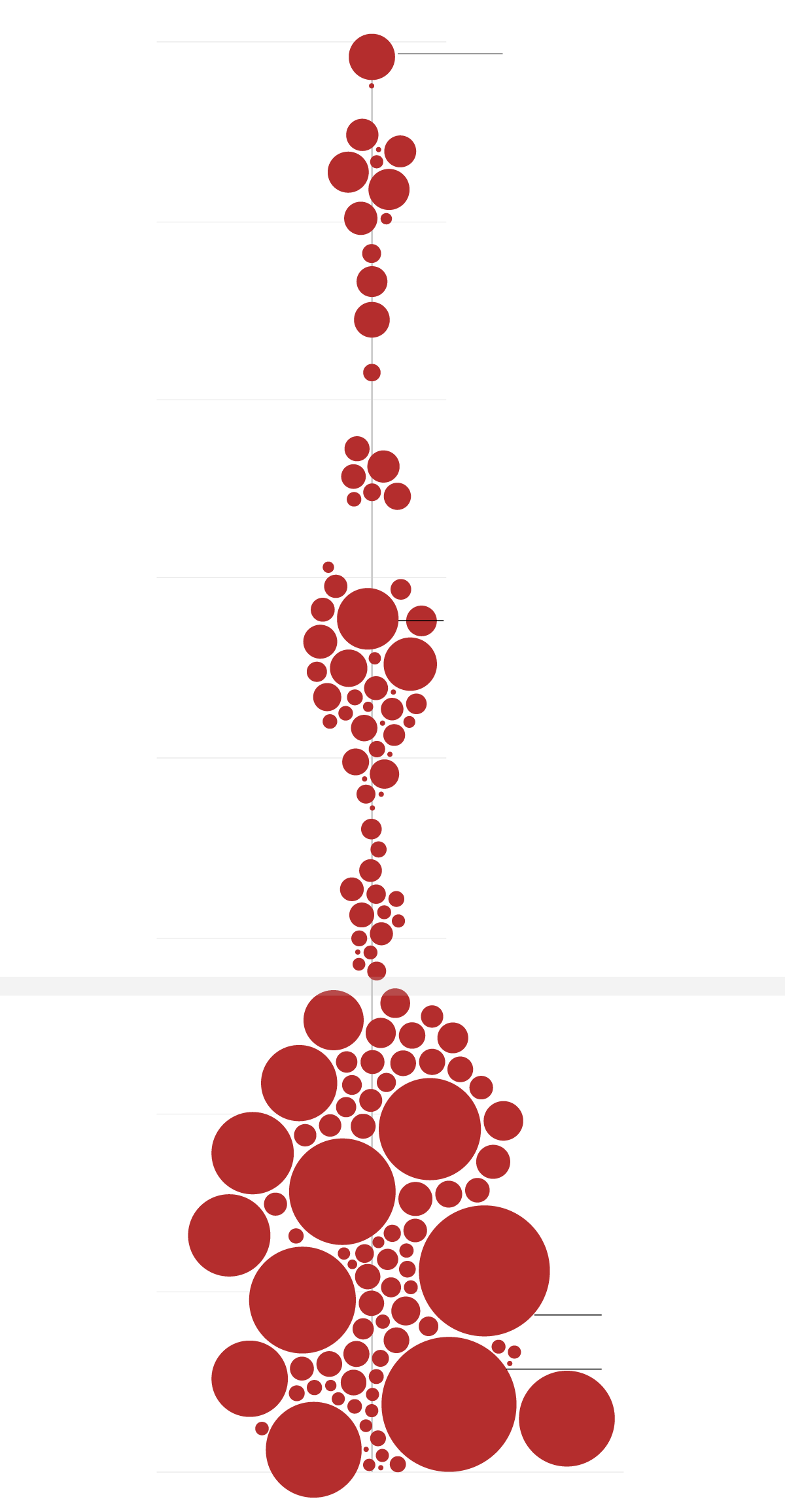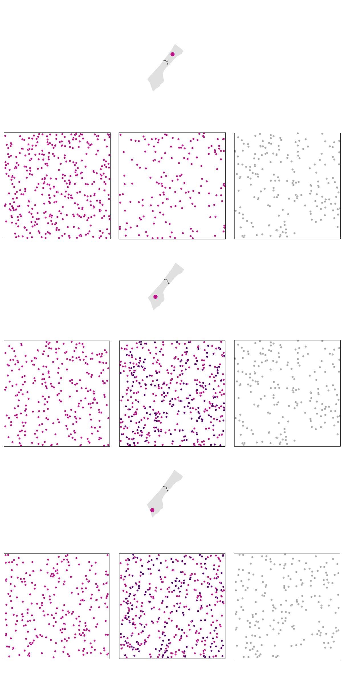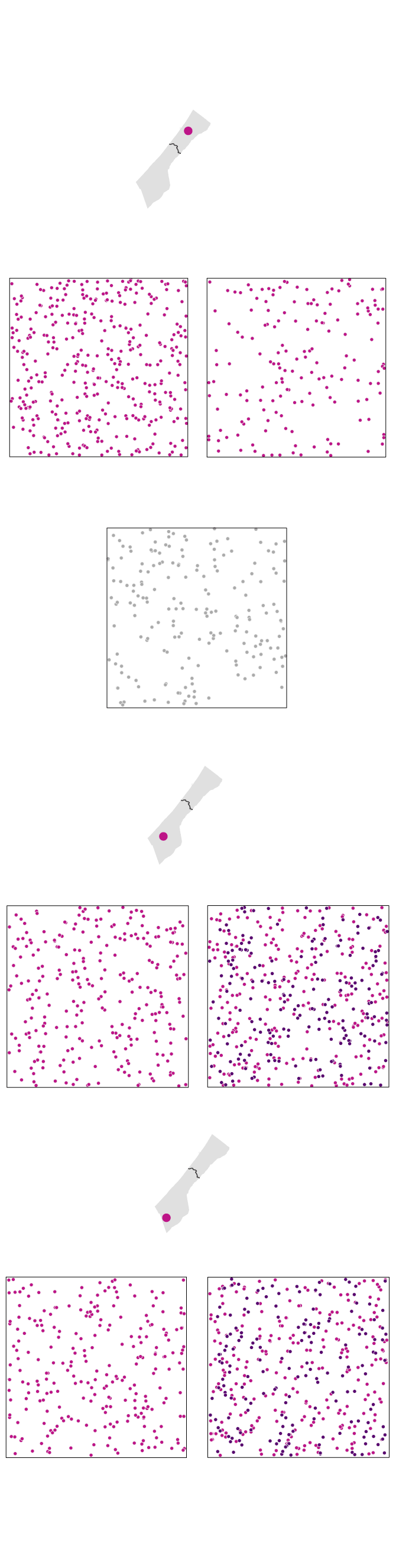 Cada punto es una de las 149 órdenes oficiales del ejército israelí para evacuar una zona. El tamaño, su extensión. La primera fue dos días después del 7-O