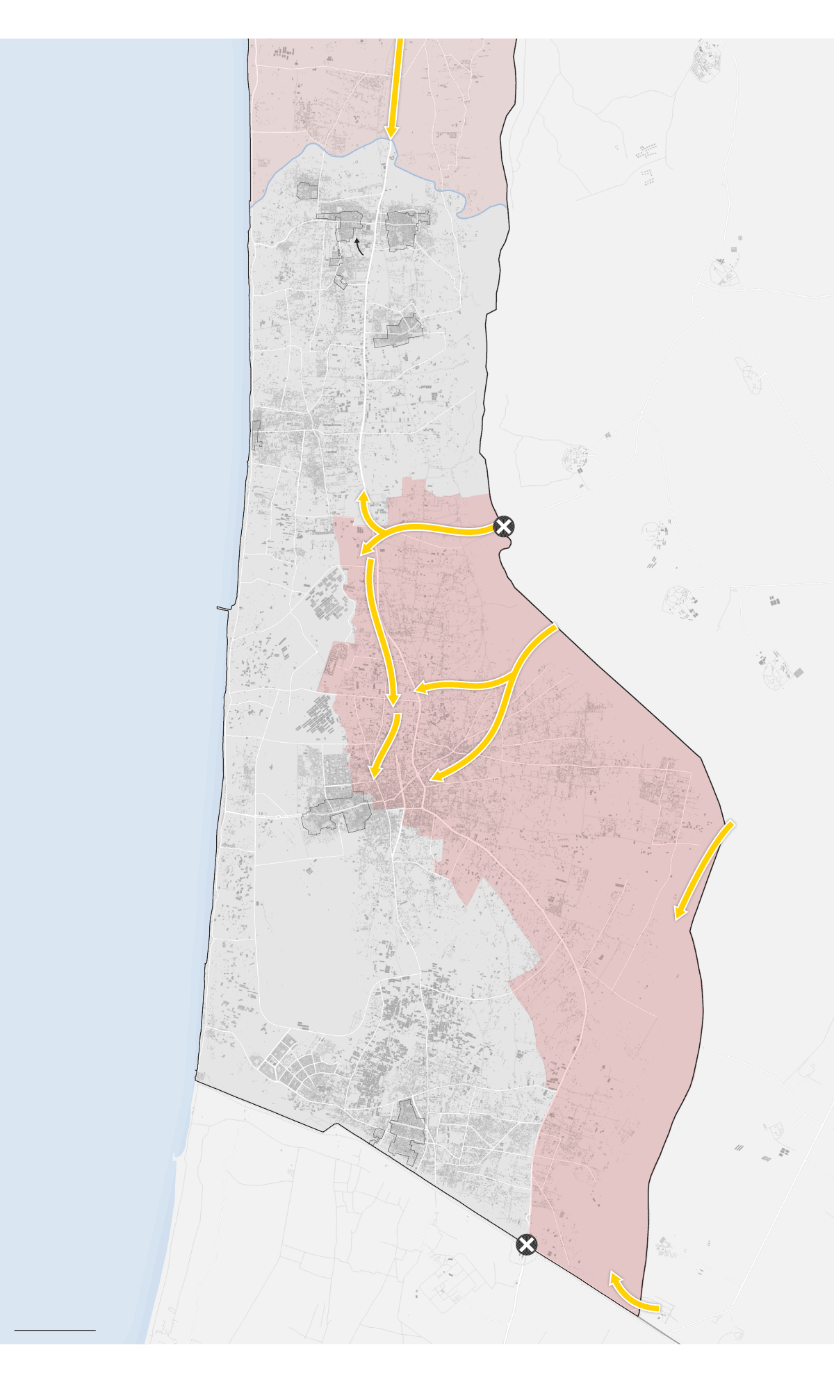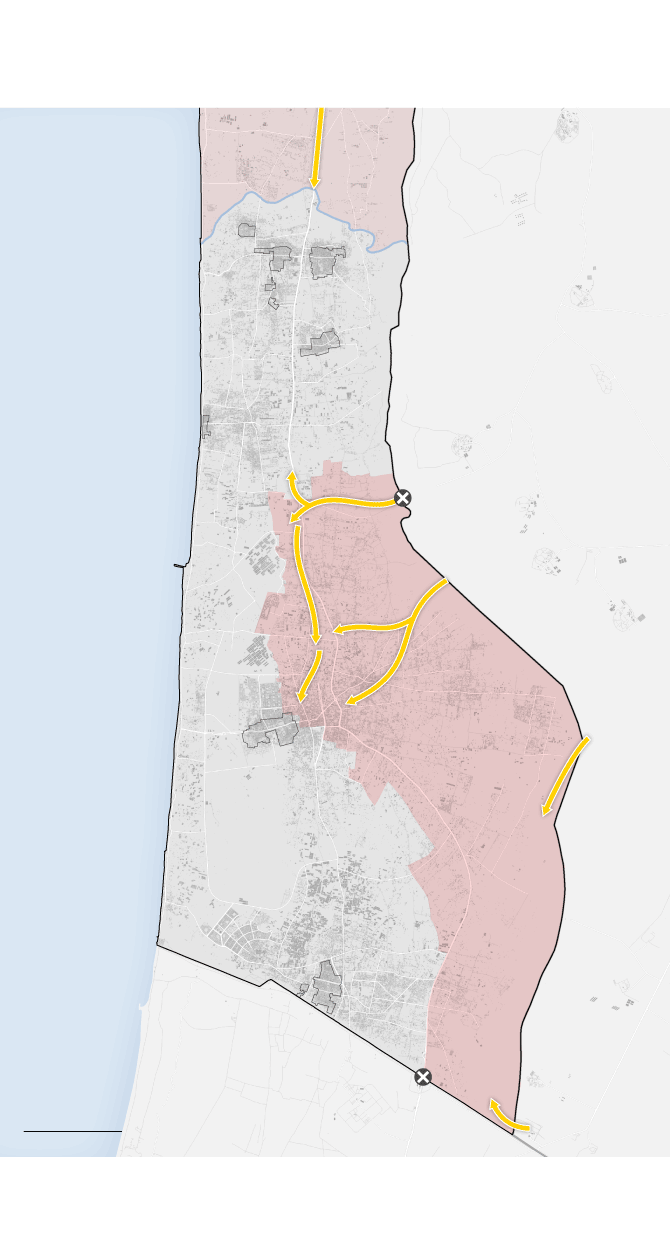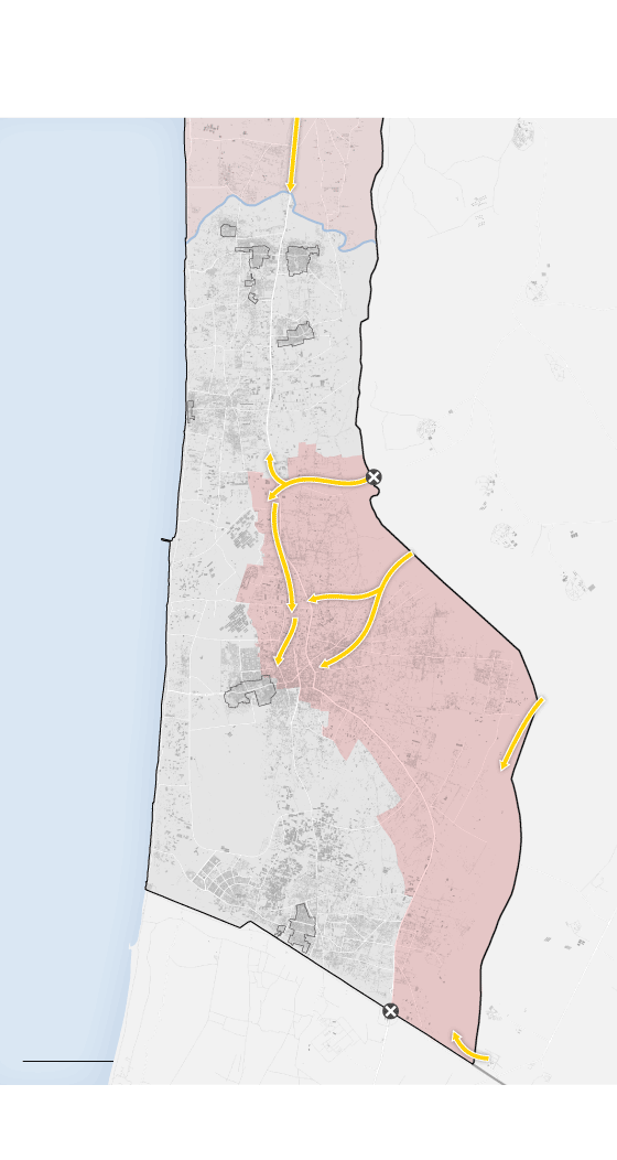 Las órdenes de desplazamiento forzoso de la población apenas dejaron lugares seguros. La ONU estima que por entonces solo un 18% del territorio de Gaza quedaba fuera de las áreas militares israelíes o con órdenes de evacuación.