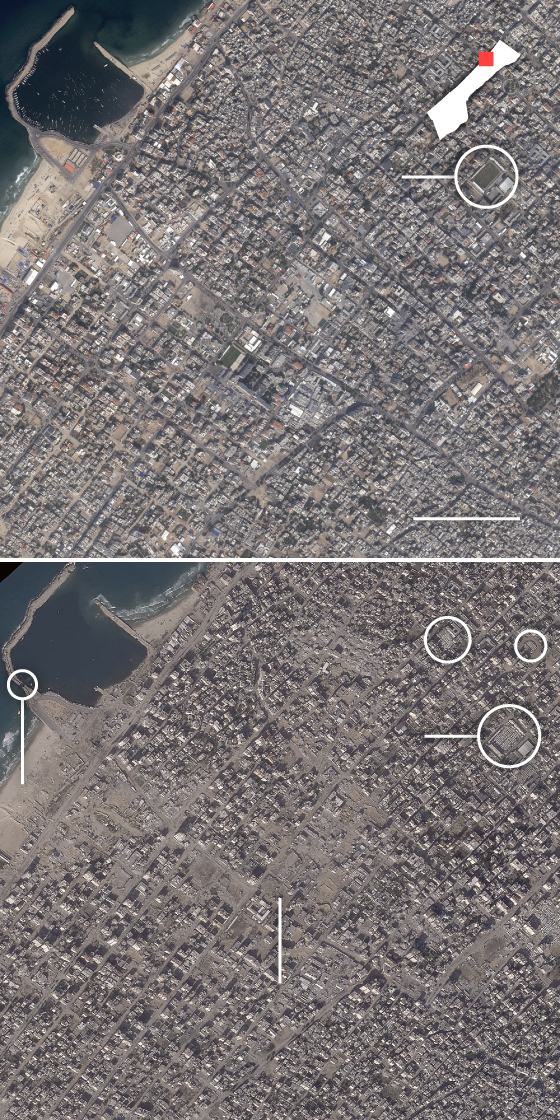Miles de bombas y destrucción visible por satélite: mapas y gráficos de dos años de invasión de Gaza