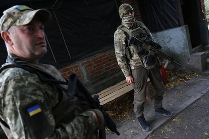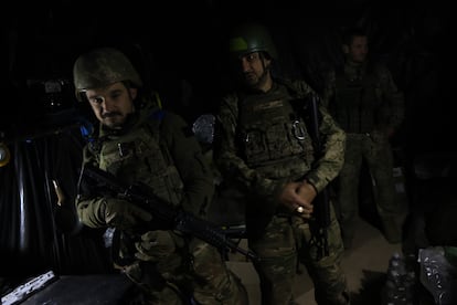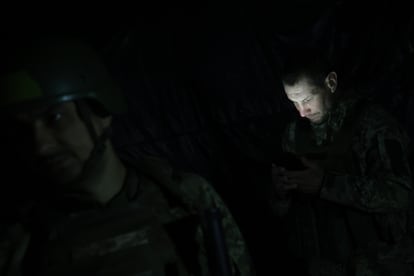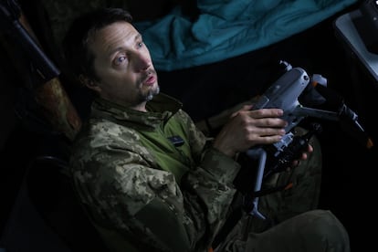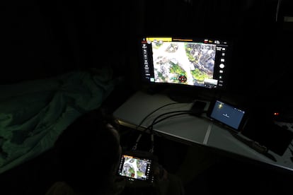 Diesel (nombre de guerra), de 47 años, y sus compañeros del 151º Batallón, han acudido en algunas ocasiones hasta las coordenadas que les ofrecen sus compañeros que peinan el cielo con las cámaras de los drones. Pero afirman que las misiones son muy peligrosas porque los rusos también controlan el espacio con sus equipos. “Entrar ahora en la ciudad es muy complicado”, reconoce este soldado de dimensiones enormes que se cubre el rostro como condición para ser fotografiado.