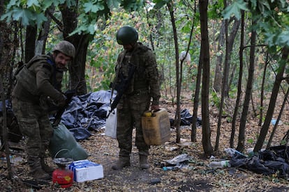 La vía de las tuberías de gas es arriesgada, incómoda y complicada, estima Oleksi, el piloto de drones, que relata los casos en los que los veían salir a la superficie sin asistencia y sin apenas ser autosuficientes. No cree que haya sido una estrategia determinante para la batalla por esta localidad del este de la región de Járkov, aunque sí reconoce que al ejército ucranio le siguen faltando efectivos en esta zona. Cerrada esa vía subterránea, explica, “ahora intentan llegar por bosques o ríos y es más difícil localizar cómo llegan”. Desde su posición en un agujero varios metros bajo tierra, Oleksi carga con dos bombas de aproximadamente medio kilo un nuevo dron que dirige hacia Kupiansk. Es la rutina de una guerra en la que estos aparatos se han comido en gran medida a la artillería.