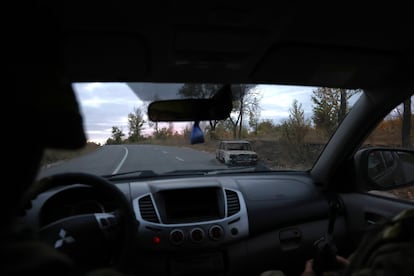 A las puertas de una casa en una zona rural a las afueras de Kupiansk yace con importantes daños el coche en el que hasta hace poco se movían Diesel y sus compañeros. Cuenta que se salvaron de milagro cuando el dron ruso les dio de lleno en una de las calles. Los movimientos por las pistas de la zona –a veces cubiertas con entramados de redes para evitar ataques– son medidos y controlados dentro de lo posible, siempre con un aparato detector de drones a mano por si hay que ponerse a cubierto.