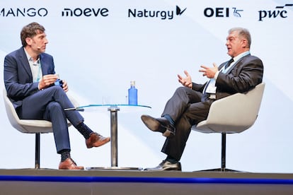 La esencia del FC Barcelona, esa que lo ha potenciado como uno de los clubes más singulares del mundo, simbolizada en el lema Més que un club, no se toca. “Hemos mantenido nuestras esencias fundacionales”, ha presumido su presidente Joan Laporta en el foro World In Progress (WIP), organizado por el Grupo PRISA, editor de EL PAÍS. Pero, en cambio, sí tiene que adaptarse el club a los tiempos modernos. En el coloquio sobre el fútbol y la geopolítica, el máximo dirigente de la entidad catalana ha destacado: “El Barça tiene la capacidad de defender todas las líneas de pensamiento de todo el barcelonismo. Y eso se consigue con comprensión. Antes teníamos UNICEF [como patrocinador], probablemente la decisión no deportiva más importante que hemos tomado; ahora tenemos ACNUR. Cuando compite, el Barça tiene un compromiso con la democracia, la tolerancia y los derechos humanos. Y eso lo agradecen los aficionados del Barcelona en todo el mundo. Es una manera de sentirse bien en el club”.