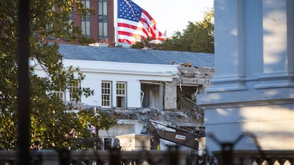 El enorme brazo de una excavadora de demolición empezó a última hora de la tarde (hora de Washington) a derribar la fachada del ala este de la Casa Blanca, el lugar donde tradicionalmente se han situado las oficinas de uso de la primera dama y su equipo. Las obras, que empezaron sin previo aviso, se adivinaban tras las vallas que ocultan esa parte del complejo, desde la calle 15, a la altura de donde se sitúa el Departamento del Tesoro.
