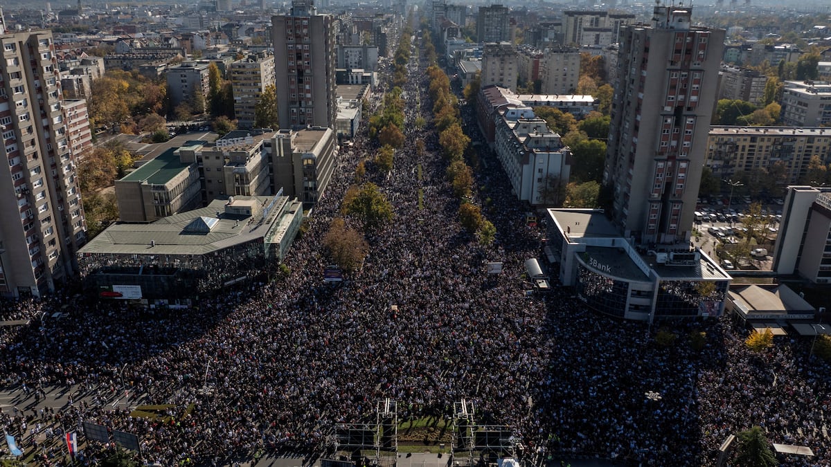 Los estudiantes que iniciaron las protestas hace un año con las manos pintadas de rojo, pidiendo responsabilidades y bajo el lema de “la corrupción mata”, lograron reunir a decenas de miles de personas. Llegaron de forma pacífica desde varios puntos del país y se fueron de la misma manera: en silencio, sin líderes visibles en el estrado, tal como han actuado a lo largo de un año. Pero con un objetivo claro para los presentes: la caída del presidente, Aleksandar Vucic, del gobernante Partido Progresista Serbio (SNS, por sus siglas en serbio).