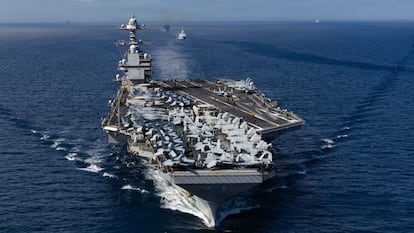 En agosto, Washington comenzó un despliegue militar en la zona que, con la llegada del Gerald Ford, ya acumula en las aguas internacionales cercanas a Venezuela el 20% de sus buques de guerra movilizados en todo el mundo. El portaaviones y su grupo de escolta se suman, así, a una flotilla que ya contaba con una decena de barcos ―incluido un submarino― y aviones F-35. Tras su arribo, también se elevan a cerca de 15.000 los soldados estadounidenses activos en la zona. Es una acumulación que no tenía lugar en América Latina desde hace décadas, y que Washington reserva para los conflictos más peligrosos.