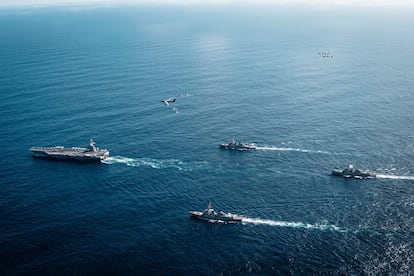 La llegada del Ford y su grupo de combate eleva a 15.000 el número de soldados de EE UU en la zona y convierte la presencia militar estadounidense en el Caribe en la mayor desde hace más de sesenta años. Eso ha desatado las conjeturas de que el objetivo real de la misión —bautizada desde la semana pasada como “Lanza del Sur” (Southern Spear) y que incluye también ataques contra embarcaciones en el Pacífico oriental— sea forzar un cambio de régimen en Venezuela. El propio presidente venezolano, Nicolás Maduro, denuncia que el verdadero propósito es su caída.