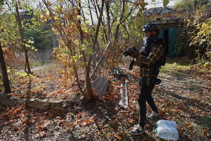 El reciente ataque en el este de Ucrania en el que se ve al fotoperiodista ucranio Oleg Petrasyuk vestido de camuflaje y disparando no con una cámara sino con una escopeta hacia un dron ruso explica bien el galimatías bajo el que se encuentra la profesión de reportero en este conflicto. La ley marcial obliga a acudir a filas a los ciudadanos de entre 25 y 60 años. Petrasyuk, que comenzó a cubrir la invasión rusa haciendo fotos para la European Pressphoto Agency (EPA), es ahora oficial de prensa de la Brigada 24. A finales de octubre, el joven acompañaba junto a otros soldados a una reportera holandesa en Kostiantinivka (región de Donetsk) cuando, a la puerta de una iglesia bombardeada, se les empezó a acercar un dron kamikaze. “Entra en la iglesia”, le requirió a ella mientras trataba de afinar la puntería en sucesivos disparos hasta que, en la arboleda del fondo, se ve estallar al aparato, según el vídeo de los hechos.
