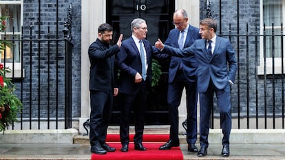 Starmer ha reunido a los dos líderes europeos y al ucranio en un momento crucial, cuando el Gobierno de Trump vuelve a dar señales de querer desentenderse del conflicto. La Estrategia de Seguridad Nacional publicada por Washington la semana pasada, con duras críticas hacia Europa y no tantas hacia Rusia, ha supuesto un nuevo jarro de agua fría en las relaciones trasatlánticas. Hasta el punto de que parte del encuentro de este lunes en Londres tiene que ver con la inesquivable decisión que deben tomar los líderes europeos, entre intentar una vez más atraer a Washington o comenzar a apoyar en solitario a Ucrania.