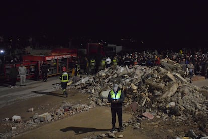 Hombres y mujeres abrigados tanto a la usanza tradicional como con prendas modernas observaban a pie firme la tragedia de sus vecinos bajo la lluvia y el frío de las afueras industriales de Fez. Solo quedaba un terreno sembrado de cascotes y hierros retorcidos en donde pocas horas antes se alzaban casas como las suyas. Las mujeres servían fuentes de cuscús a los miembros de los equipos de rescate, que se retiraban antes de la caída del sol del miércoles. Los hombres deambulaban absortos entre los escombros.