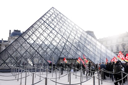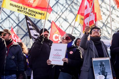 El museo del Louvre no ha abierto hoy sus puertas. Después de semanas de protestas y negociaciones, tras una votación apoyada por unanimidad en una asamblea de los trabajadores realizada a primera hora, la pinacoteca permanecerá cerrada este lunes. Una situación insólita que cogió desprevenidos a los visitantes que tenían prevista y concertada su cita. Muchos, con los billetes en la mano, preguntaban desconcertados a los empleados de una compañía de seguridad privada, que hacían gestos y se los sacaban de encima. Otros era más elocuentes. “Sí, está cerrado. ¿Por qué? Ya sabe, esto es Francia”, respondía una señora con walkie talkie al pie de la pirámide de cristal por donde cada día entran unos 40.000 visitantes a la pinacoteca más importante del mundo, hoy sumida en un proceso de degradación que ha llevado a sus empleados a convocar una huelga.