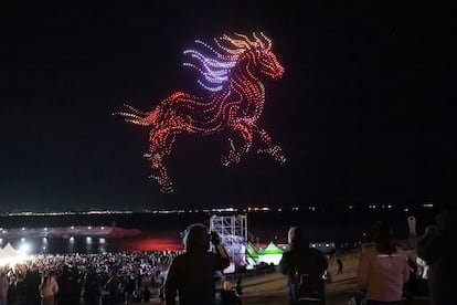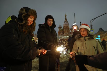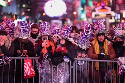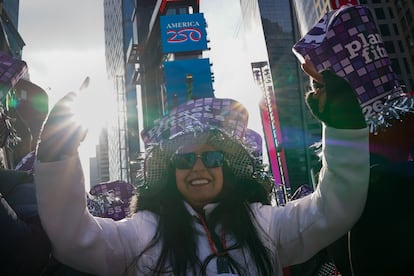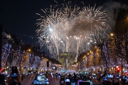 HANNIBAL HANSCHKE (EFE)Drones iluminan el Cabo Ganjeol, en la costa de Ulsan, en Corea del Sur, como parte de las festividades para dar la bienvenida al nuevo año. YONHAP (EFE)Jóvenes celebran el Año Nuevo junto a otros en las afueras de la Plaza Roja, con la Catedral de San Basilio, en Moscú, Rusia. APJóvenes juegan en las olas antes de las celebraciones de Año Nuevo, en la playa de Copacabana en Río de Janeiro, Brasil.Tita Barros (REUTERS)Mujeres usan gafas con el año 2026"durante las celebraciones de Año Nuevo en Lusail, Qatar.Mohammed Salem (REUTERS)Una pareja se toma una foto junto a un árbol de Navidad durante una celebración de Nochevieja antes del toque de queda, en Kiev, Ucrania.Gleb Garanich (REUTERS)Los fuegos artificiales iluminaron el cielo en el centro de Londres para celebrar el año nuevo.Alberto Pezzali (AP)Asistentes juegan con globos mientras celebran el inicio del 2026, en un centro comercial de Beijing, China.Andy Wong (AP)Los asistentes observan un espectáculo de luces y fuegos artificiales en el Arco del Triunfo para celebrar el año nuevo, en la avenida de los Campos Elíseos en París, Francia.CHRISTOPHE PETIT TESSON (EFE)Una mujer festeja en Times Square mientras espera la caída de la bola de Nochevieja, en Manhattan, Nueva York, en Estados Unidos. Ryan Murphy (REUTERS)