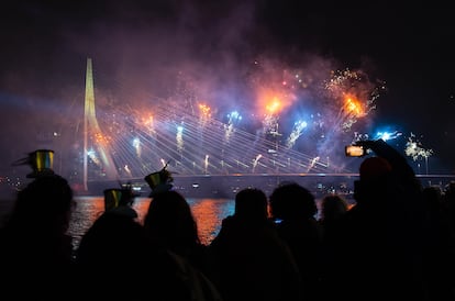 Matt Turner (EFE)Los fuegos artificiales explotan sobre Marina Bay durante las celebraciones de Año Nuevo en Singapur.Ore Huiying (REUTERS)Siluetas de varias personas en el último atardecer del año en Bombay (India).DIVYAKANT SOLANKI (EFE)Una niña celebra el Año Nuevo en Taipéi (Taiwán).ChiangYing-ying (AP)Vista general de la multitud en un concierto bajo un aguacero mientras esperan los fuegos artificiales del rascacielos Taipéi 101.RITCHIE B. TONGO (EFE)Homenaje a las víctimas del ataque terrorista de Bondi durante las celebraciones de Nochevieja en Sídney.DAN HIMBRECHTS (EFE)Los fuegos artificiales iluminan el puerto de Sídney (Australia).Dan Himbrechts (DPA/Europa Press)Jóvenes esperan para celebrar el Año Nuevo frente al edificio del Gobierno de la Ciudad de Taipéi (Taiwán).ChiangYing-ying (AP)Fuegos artificiales explotan en el Arco del Triunfo durante las celebraciones de Año Nuevo en la avenida de los Campos Elíseos en París, Francia.Stephanie Lecocq (REUTERS)La gente espera en Times Square antes de las celebraciones de Nochevieja en la ciudad de Nueva York, Estados Unidos. Kylie Cooper (REUTERS)Vista general de las celebraciones de Nochevieja de Hogmanay, en Edimburgo, Escocia.Steve Welsh (AP)Fuegos artificiales en Hamburgo, Alemania.Christian Charisius (AP)Personas reúne para las celebraciones de Año Nuevo en Barcelona, España.Bruna Casas (REUTERS)Fuegos artificiales iluminan el cielo durante la celebración nacional de Año Nuevo en el Puente Erasmo de Róterdam, en Países Bajos.