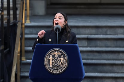 Otro referente del ala progresista del partido, la congresista por Nueva York Alexandria Ocasio-Cortez, había sido más de una hora antes la primera oradora en tomar la palabra. “Hemos elegido optimismo frente a miedo; prosperidad para muchos y no solo riqueza para unos pocos“, dijo Ocasio-Cortez, cuya fenomenal irrupción en política en 2018 sentó las bases para lo que llegaría con Mamdani. “Si podemos lograrlo aquí, podremos hacerlo en cualquier lugar”, remató, en una referencia a la canción New York New York, que popularizó Frank Sinatra.